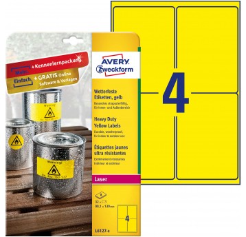 Etykiety Heavy Duty Avery Zweckform, A4, 8 ark./op., 99,1 x 139 mm, żółte, poliestrowe