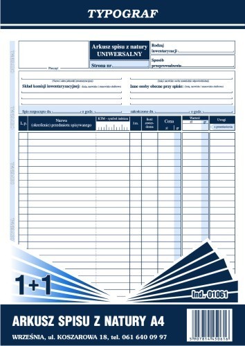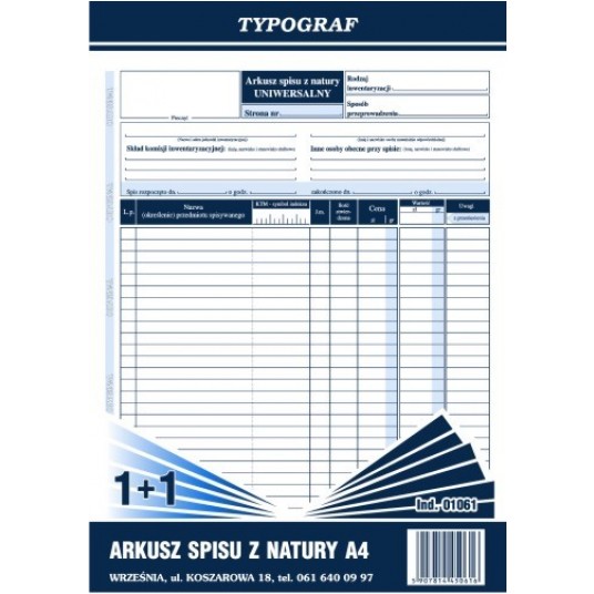 Arkusz spisu z natury A-4 (s) 1+1 40k.