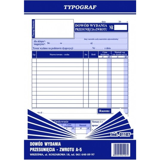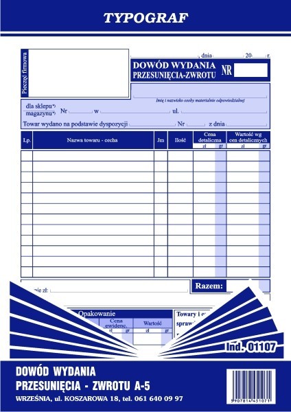 Dowód wydania - przesunięcia - zwrotu A-5 (s)