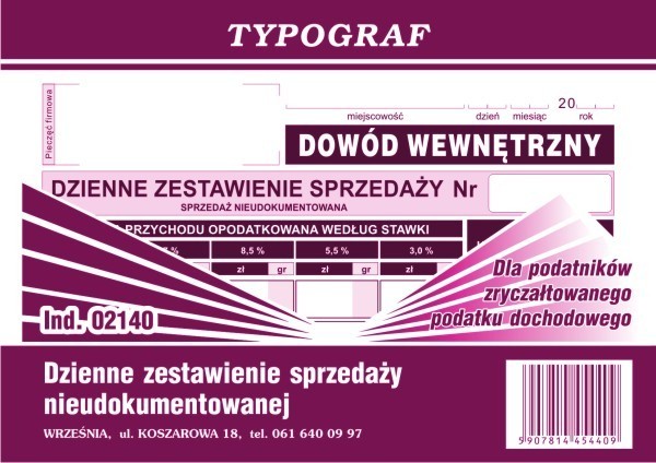Dzienne zestawienie sprzedaży nieudokumentowanej d
