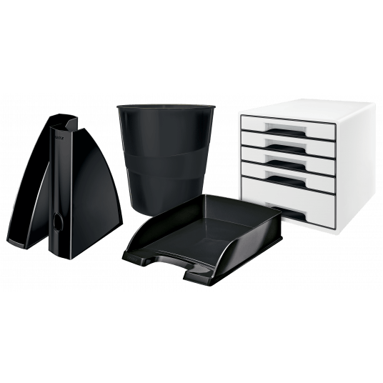- ułatwia organizację dokumentów dzięki możliwości ustawiania półek schodkowo lub pionowo jednej na drugiej