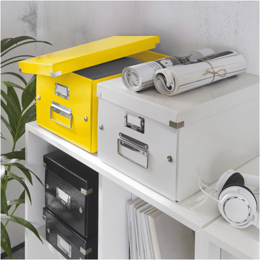 Średniej wielkości uniwersalne pudełko do przechowywania lub przenoszenia przedmiotów w formatach do A4.