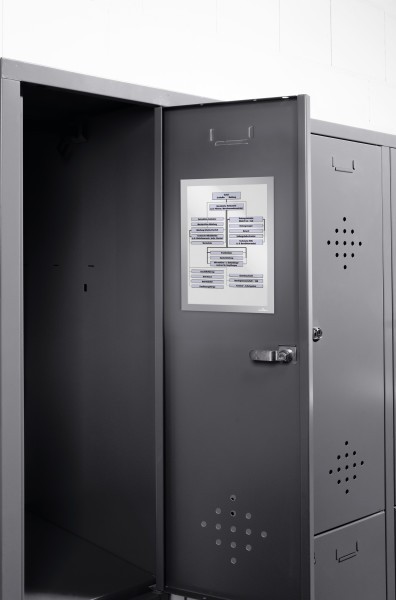 - kolorowa ramka informacyjna z magnetycznymi paskami mocującymi na informację w rozmiarze A4