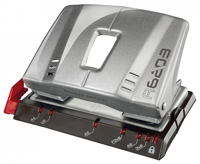 - wgłębienia w tylnej części podstawy zgodne z rozstawem ringów w segregatorze umożliwiają szybkie dziurkowanie bez użycia listwy formatowej