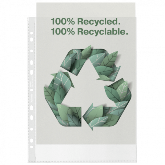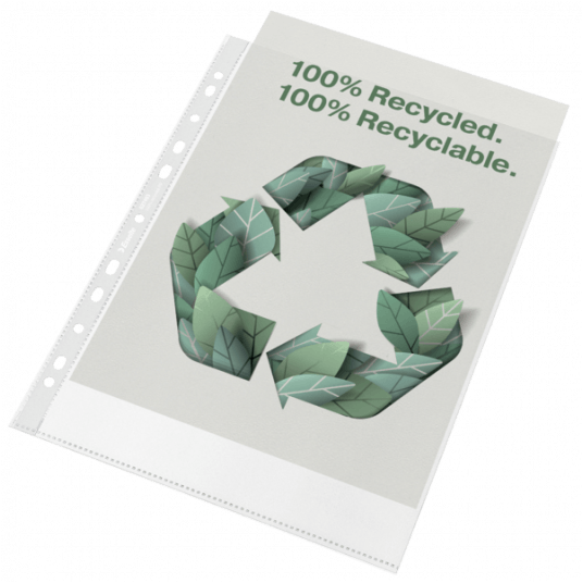 - Ekologiczna koszulka na dokumenty A4 do codziennego użytku, wykonana z bardzo mocnego PP w 100% pochodzącego z recyklingu.
