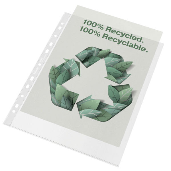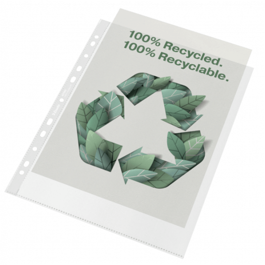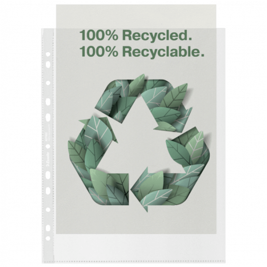Ekologiczna koszulka na dokumenty A4 MAXI do codziennego użytku, wykonana z bardzo mocnego PP w 100% pochodzącego z recyklingu. Pasek z multiperforacją umożliwia wygodne przechowywanie dokumentów we wszystkich rodzajach segregatorów. Mieści więcej arkuszy papieru A4 niż standardowe koszulki, do 80 kartek. Cały produkt można ponownie wykorzystać i poddać recyklingowi. Jest zapakowany w kartonowe pudełko, które również pochodzi w 100% z recyklingu i nadaje się do ponownego przetworzenia. Wyprodukowano w Europie. Zawartość pochodząca z recyklingu potwierdzona przez certyfikat UL. Bardzo wytrzymały PP 70 mikronów. Pudełko zawiera 100 sztuk.