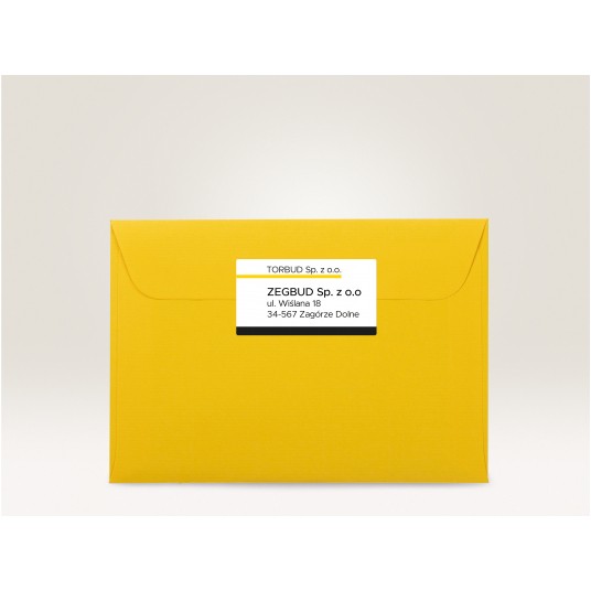 • Eleganckie etykiety z zaokrąglonymi narożnikami, dostępne w rozmiarach dostosowanych do wszystkich popularnych typów kopert.