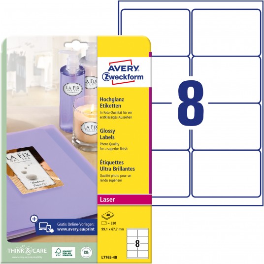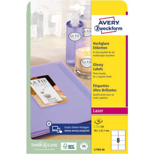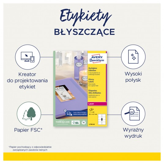 • Idealne do oznaczania produktów. Błyszczące etykiety zapewniają także eleganckie wykończenie broszurom i katalogom.