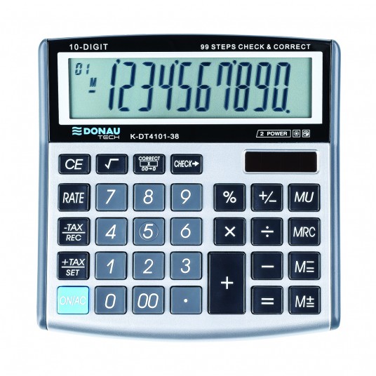 - kalkulator z 10-cyfrowym wyświetlaczem z zasilaniem bateryjno-solarnym