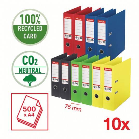 - Segregator Esselte No. 1 z kartonu w 100% pochodzącego z recyklingu nautralny pod względem emisji CO2