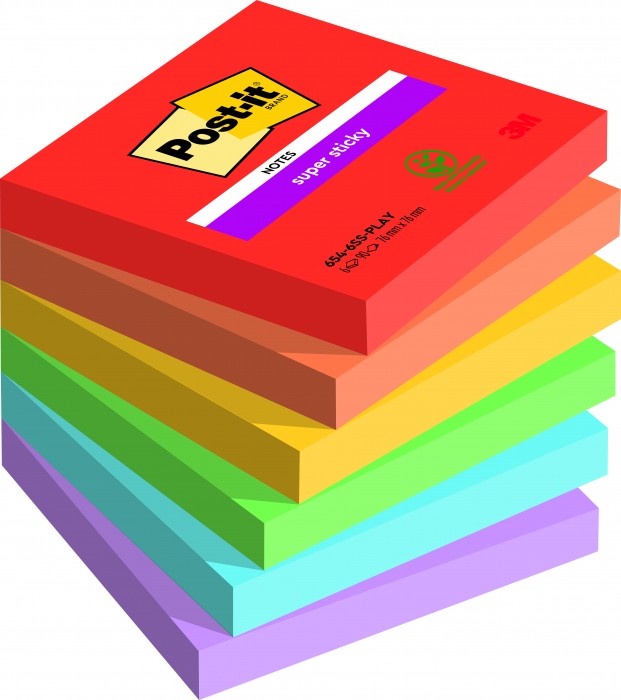 Kolorowe karteczki samoprzylepne Post-it® Super Sticky to innowacyjne rozwiązanie na codzienne zarządzanie zadaniami i priorytetami. Dzięki kolorom świetnie się wyróżniają, dzięki Super Sticky trzymają się w każdym miejscu.