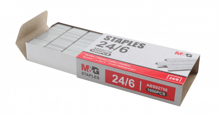 Zszywki miedziowane i galwanizowane 24/6, 1000 szt. w pudełku.