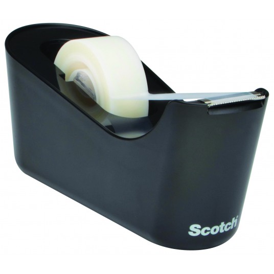 Nowoczesny podajnik Scotch® do taśmy klejącej, w klasycznym ponadczasowym wzornictwie, który pasuje na każde biurko.