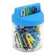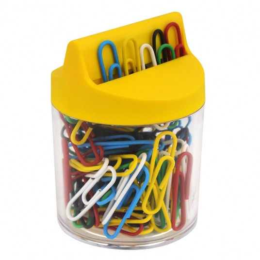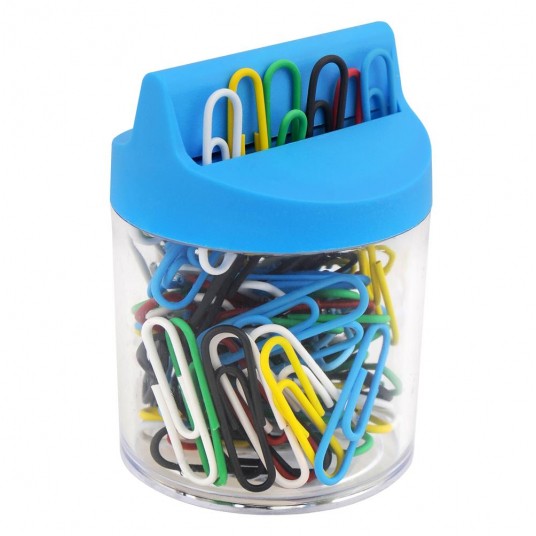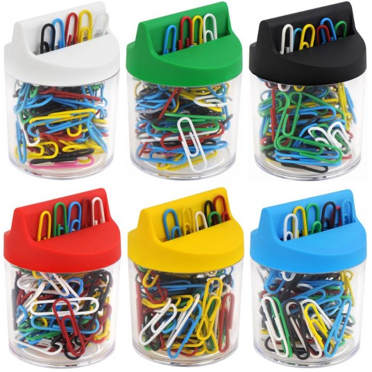 '- pakowane w pudełko z magnetyczną kolorową pokrywką ułatwiająca wyciąganie spinaczy lub w przezroczystą plastikową kasetkę