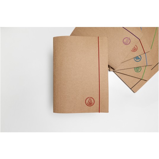 Teczka z gumką wykonana z ekologicznej jasno brązowej tektury typu Kraft podlegającej 100% recyklingowi.