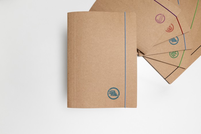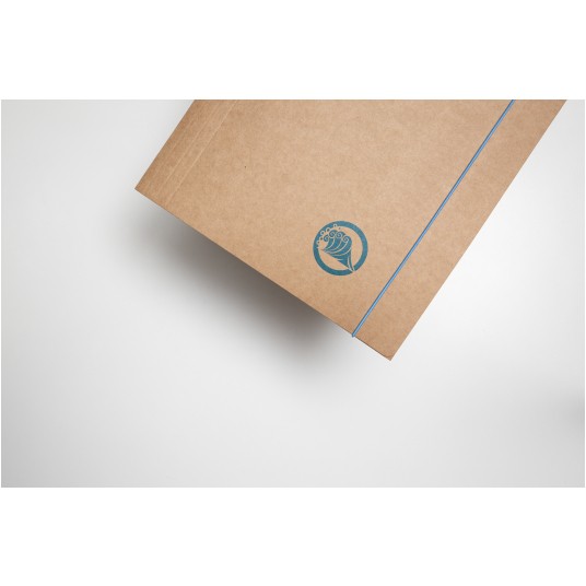 Teczka z gumką wykonana z ekologicznej jasno brązowej tektury typu Kraft podlegającej 100% recyklingowi.