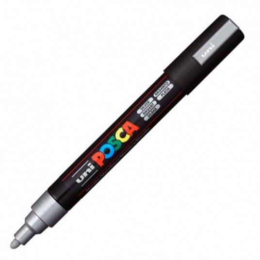 Marker Uni PC-5M Posca z farbą plakatową srebrny 1