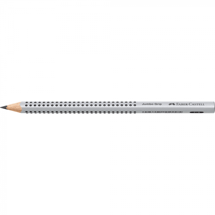 Ołówek grafitowy Jumbo Grip Faber-Castell w kolorze srebrnym.